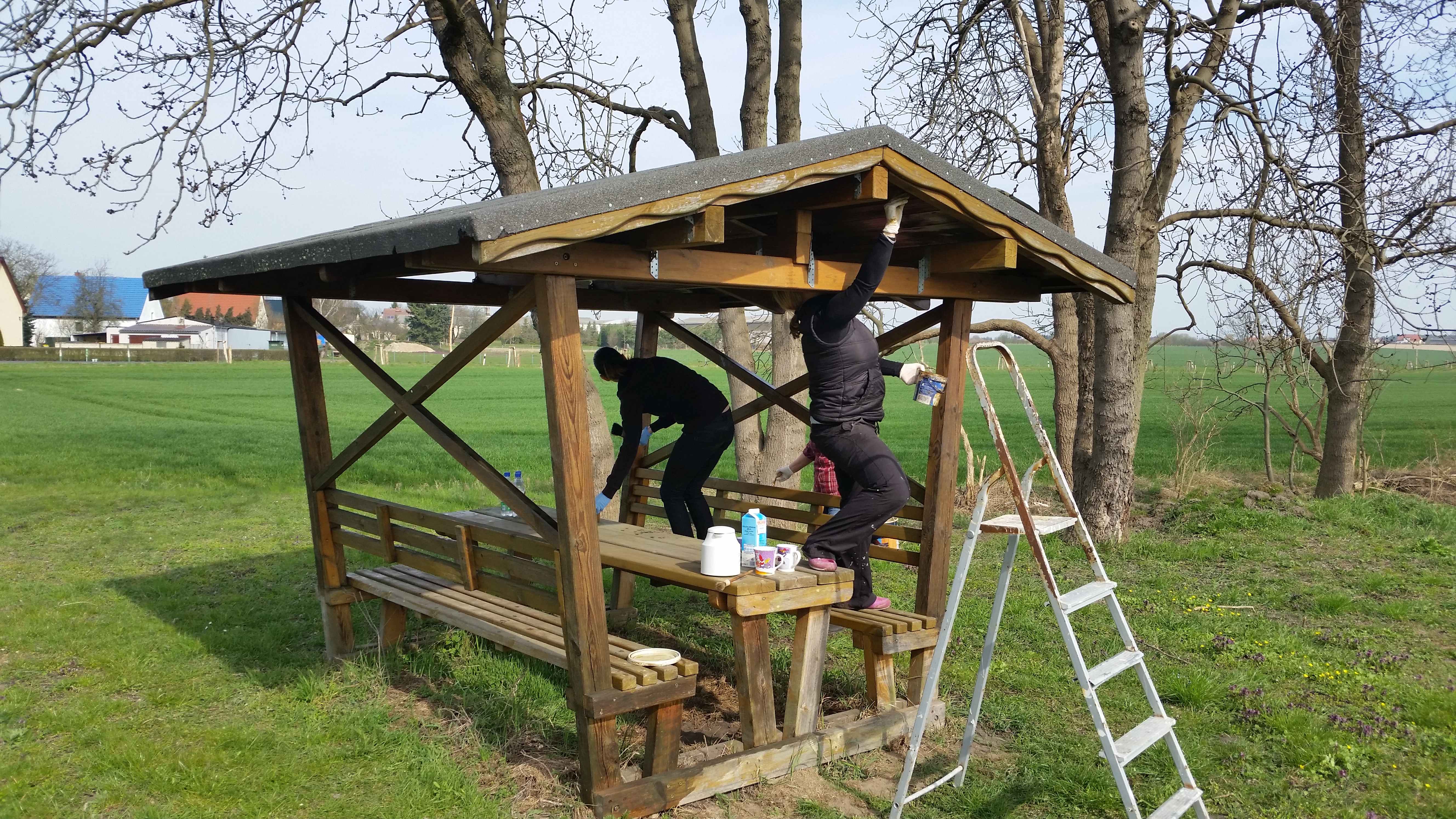 Was wurde beim Dorfputz 2016 umgesetzt: Wir schafften am Sportplatz die Waldschenken zu streichen, die Zuwegung zu planieren, die Rasenfläche abzuharken und abzuschleppen. Das Buschwerk um den Grillplatz wurde in Form gebracht. Eine weitere Baustelle war unsere geliebte Bauernbrücke, diese wurde von Bewuchs und Rost befreit und bekam im Anschluss einen neuen Anstrich. Durch die hohe Anzahl an Teilnehmern schafften wir zudem noch den Ortskern von altem Laub und Unrat zu befreien. Dabei bekam der Spielplatz ein größeres Augenmerk, hier wurden die im letzten Jahr angelegten Spielfelder neu abgestochen, um noch lange Freude daran zu haben.